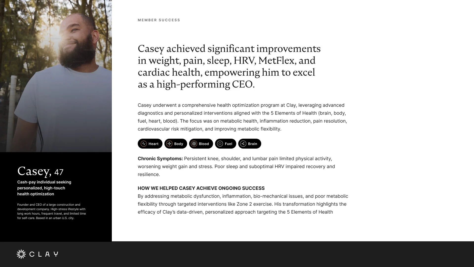 Clay Health & Care continues to evolve, but this work represents the foundation: turning a belief in proactive, longevity-focused care into a real product, a real business, and a real experience for members.