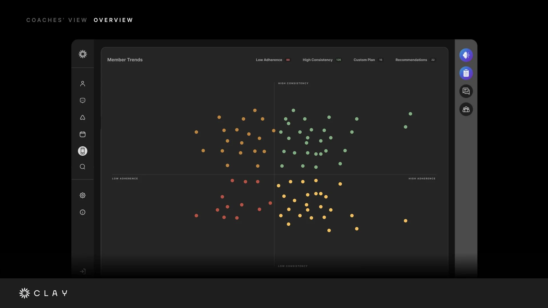 Led design of a proprietary mobile app with our cross-functional team focused on building longitudinal member relationships—created engagement home base integrating assessment results, ongoing coaching, and communication. The app is uniquely positioned to combine behavioral reporting with personalized plans through a central dashboard in Clay’s proprietary system to support coach outreach. This tool is a key product differentiator that attracted new investor interest.