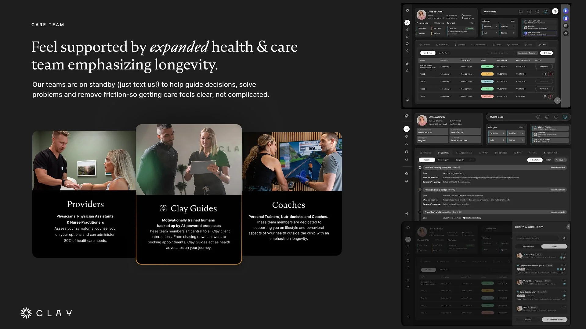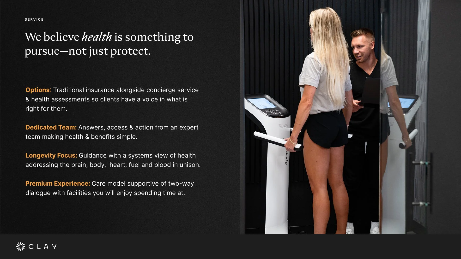 Clay Health & Care was founded to address a growing gap in healthcare: people increasingly want proactive, personalized support for long-term health and performance, yet the system remains fragmented, reactive, and difficult to navigate.